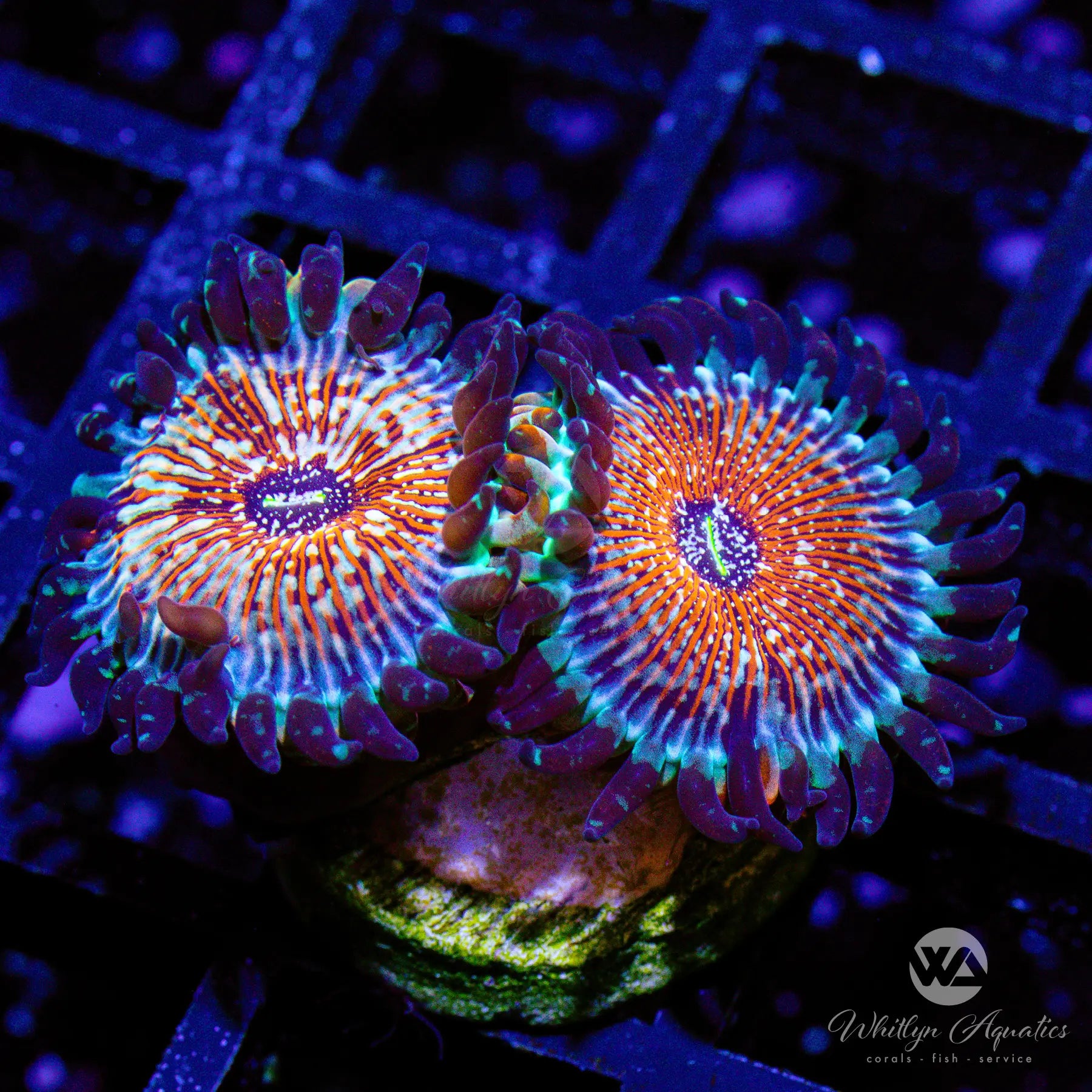 The WA Red Zombie Zoanthid is a striking color morph of the well-known White Zombie, featuring a bold red and white speckled center that intensifies its dramatic appearance. The vibrant red contrasts beautifully with the dark blue skirt, making this zoa a standout addition to any reef tank. These zoanthids thrive under moderate light and moderate flow. They are easy to care for and ideal for both beginners and experienced hobbyists. With a spreading growth pattern, they can quickly cover rock surfaces, adding movement and vibrant color to your aquarium.
