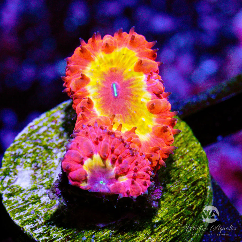 Blastomussa corals, commonly known as Blastos, are stunning and versatile additions to reef aquariums. These corals belong to the family Mussidae and are known for their large, fleshy ruffled polyps that come in a variety of vibrant colors, including reds, oranges, greens, and purples. They thrive under very low light conditions, moderate flow, and regular feedings.