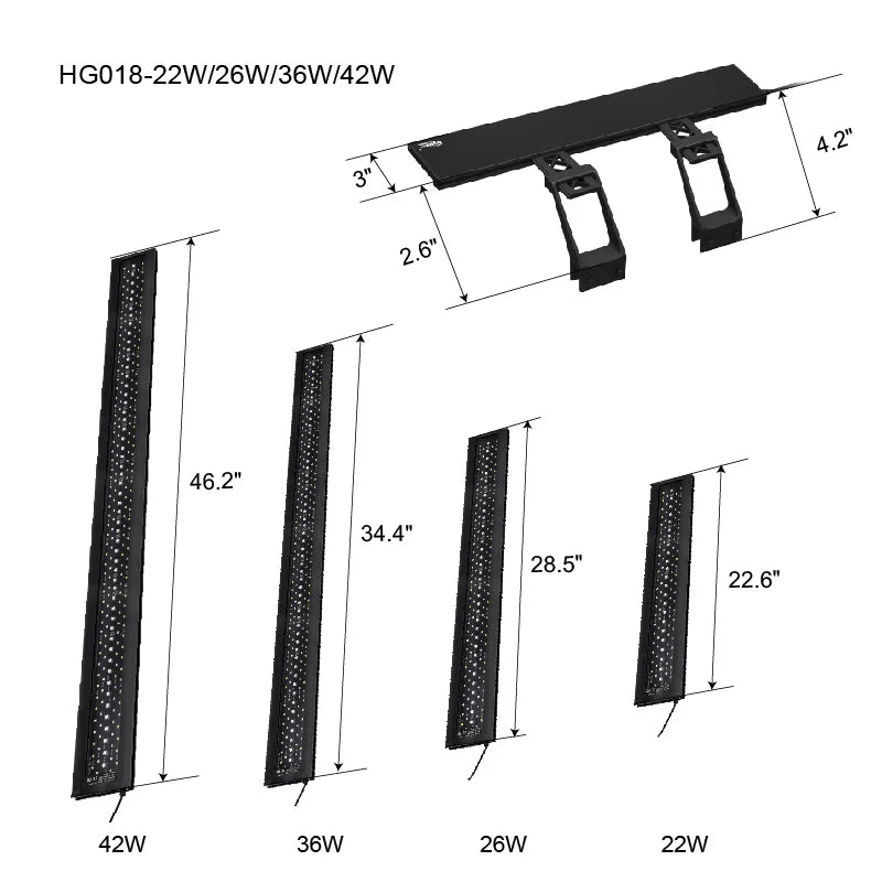 Tank Length Compatibility: 11–72 inches (varies by splicing: 14W + 42W or 22W + 26W)