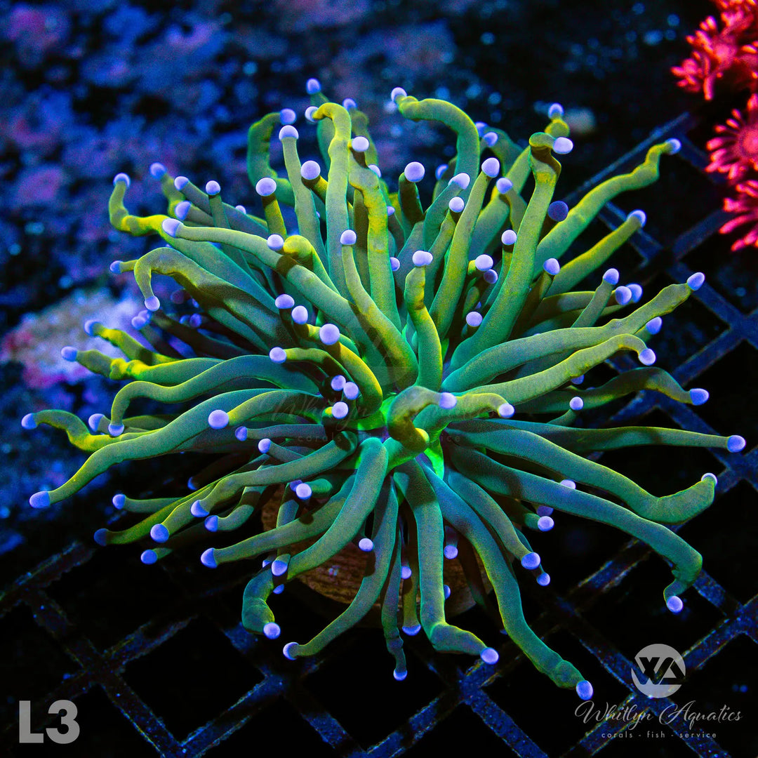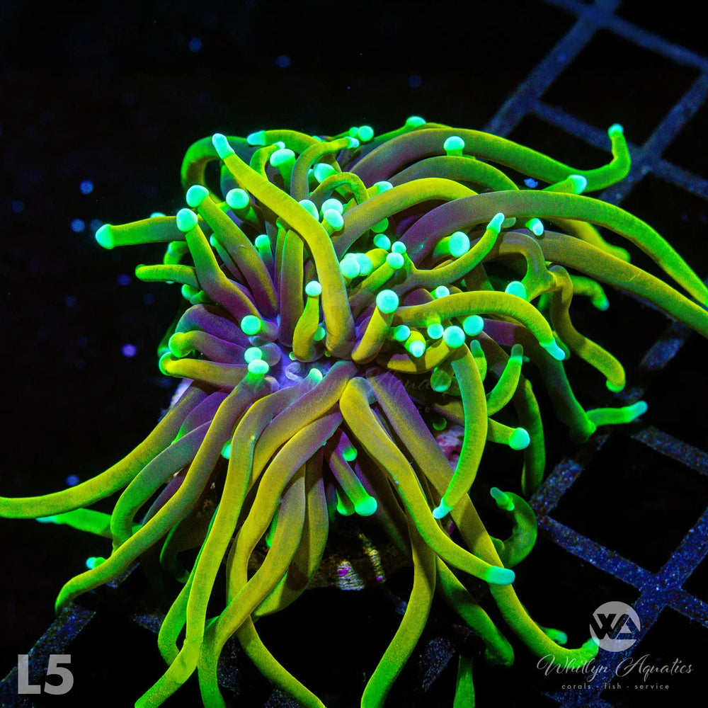 Explore our selection of rare and unique Torch Corals Frags for sale, including Rasta, New York Knicks, Holy Grail, Tiger, Indo Gold, Malaysian Miami, and many more. Like other Euphyllia, torches generally prefer moderate lighting and flow, and should be fed regularly to maximize growth and coloration. Torch corals have a strong sting, so it's important to provide ample space to avoid damage to neighboring colonies.